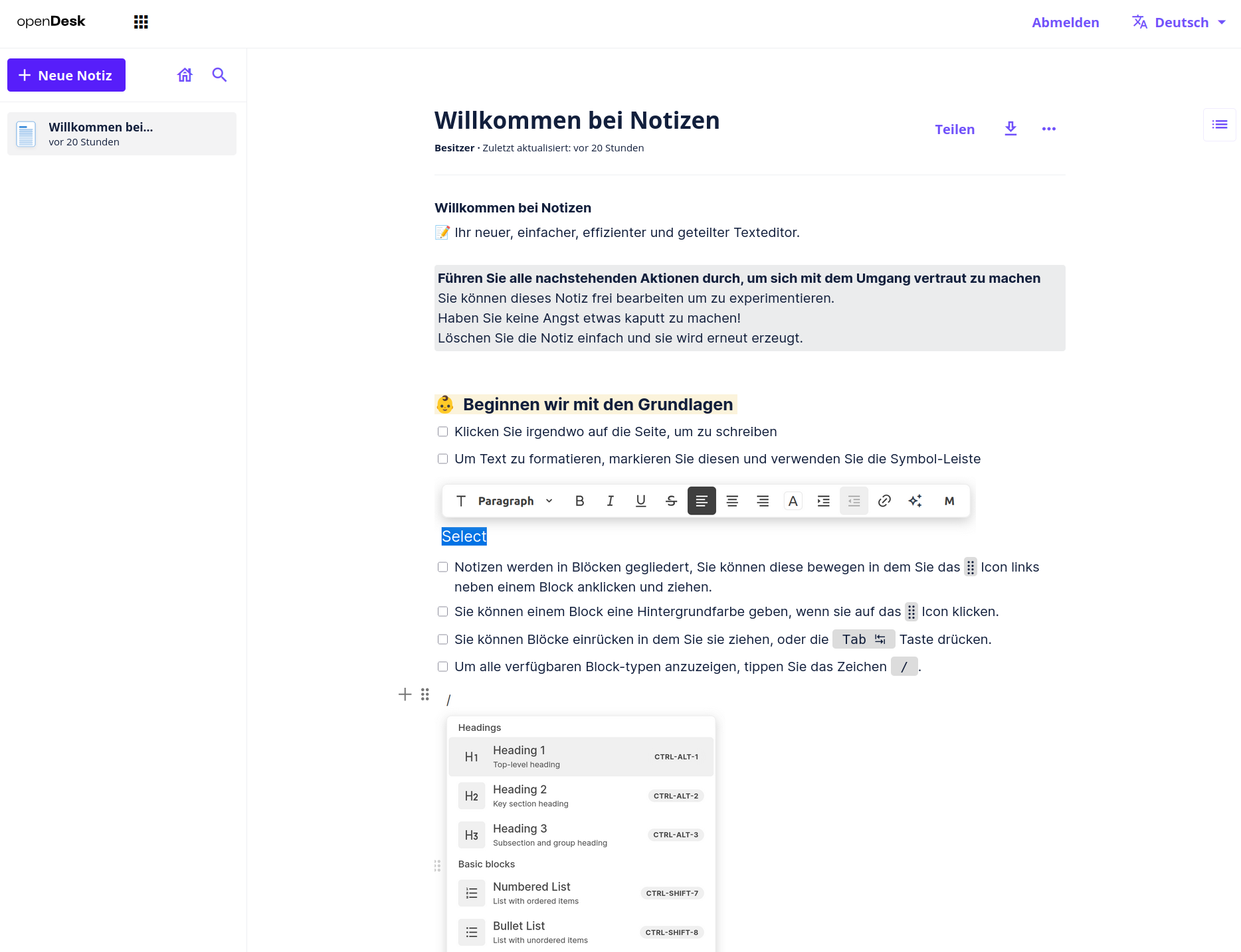 Für mich neu war der „Notizblock“ von OpenDesk. Kein Wunder, ist er doch ein dafür entwickeltes Produkt, dass mich sehr überrascht – ich möchte sogar sagen: begeistert hat. Notizen recht simpel erstellen; Checklisten super einfach. Ordnen der einzelnen Abschnitte ohne umständliches Copy & Paste. Was mir aktuell fehlt ist die Möglichkeit eingefügten Code als solchen zu deklarieren. Im Entwicklerforum fand ich zwar (recht alte) Hinweise dass es das deklarieren als Code gibt, aber im aktuellen Editor vermisse ich den…
